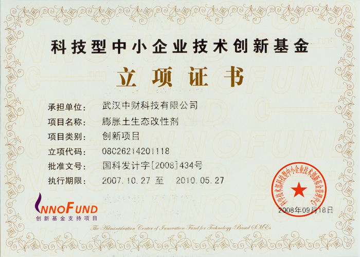 创新基金证书