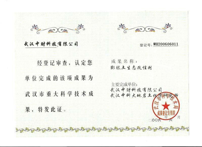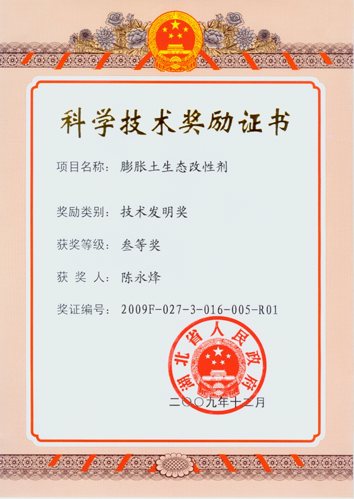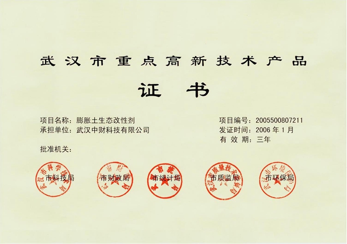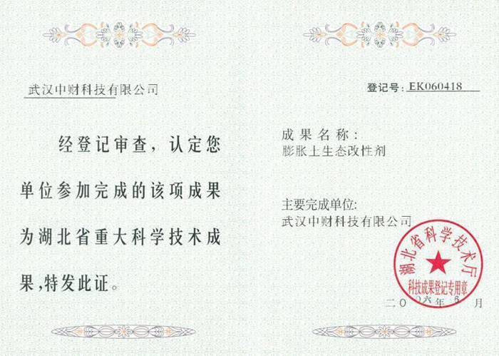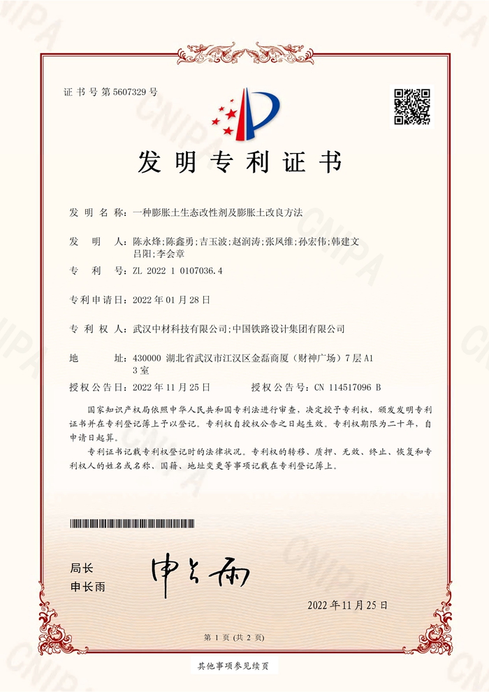 膨胀土生态改性剂发明专利证书
