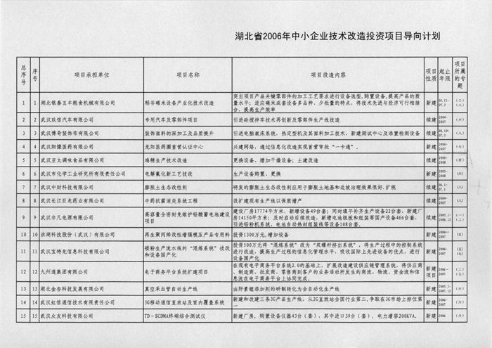 湖北省2006年中小企业技术改造投资项目导向计划