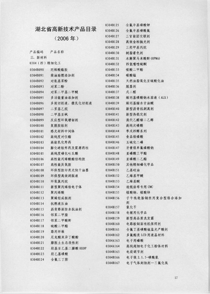 湖北省高新技术产品目录